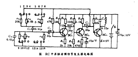 診斷器是一個RC串並聯網絡低頻振蕩器,經LC諧頻放大的音頻信號發生器見圖,圖中BG1、BG2、BG3均為3DG6D。