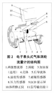 如圖2,電子表頭式的91看片网站下载主要山殼體、整流器、渦輪、信號檢測器、溫度傳感器、壓力傳感器,LCD顯示屏體積修止(X)、潤滑油泵幾部分組成。