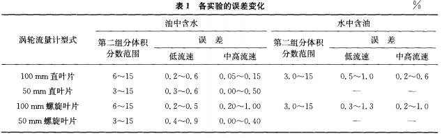油水混合液在水平管道內靜止時油和水是分層的;在開始流動或很低流速時處於油水兩層的分層流;隨著流速增加油水逐漸混合,流速愈大兩相混合愈均勻;當進入渦輪葉片轉動時兩相混合將更為均勻。因此,混合液兩相均勻程度是影響測量誤差的因素之一。