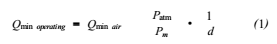 式中:Qmin operating為工作條件下的*小流量;Qmin air為工廠給出的*小流量;Patm為標定時的壓力,通常為當地大氣壓;Pm為工作條件下的壓力(絕對壓);d為被測氣體的相對密度。
