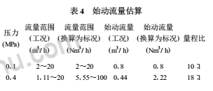 之所以提出這樣的問題,是因為在現場忽略了一個問題,就是進氣zl質量流量為定值,不管通過流量計的壓力為多少,當將工況流量換算成標況時,數值是一樣的。從表4的始動流量也可以看出,假設流量從0.2m³/h(工況壓力0.4MPa,渦輪不轉)上升到1m³/h(標況壓力0.1MPa,渦輪開始旋轉),從0.44m³/h(壓力0.4MPa,剛開始旋轉,但不在流量範圍內)上升到2.22m³/h(壓力0.1MPa,在流量範圍之內)。因此,在供氣總量一定時,高壓的不計量盲區比低壓時的大。