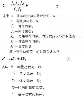將選型軸承的參數代入(5)、(6)中直接得出基本額定動載荷C,而選型軸承的動載荷Cr 必須大於基本額定動載荷C 才能滿足設計要求。