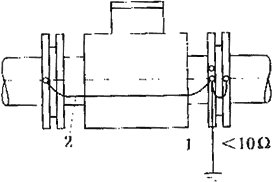 (2)傳感器安裝在塑料管道或內壁有絕緣塗層、襯裏、漆層的金屬管道上的接地