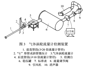被測流量計安裝在測量段中,前直管段長度大於20倍被測氣體流量計管徑,後直管段長度大於10倍流量計管徑,“U”形管或斜管微壓計連接在被測流量計的入口和出口處,用於測量流量計的壓力損失。標準表為羅茨氣體表,精度0.5級,用於計量流經被測流量計的氣體流量。標準表與計算機連接,由計算機進行實時監控,輸出瞬時流量,並顯示累計流量值。引風機用於產生管道氣體流量,通過閥門調節流量大小,引風機出口端安裝有消聲器以降低噪聲。