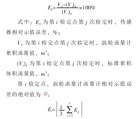 實驗中每個流量點均進行3次測量,(j=1,2,3),3次測量的平均儀表係數作為此流量點的儀表係數Ki(i=1,2,3,4,5),各流量點儀表係數*小值與*大值的平均值,作為傳感器的儀表係數。