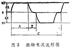 (1)激勵電流的波形檢查。在激勵電流檢查端EX+和EX一之間連接一個電阻(IΩ士0.1%),這個電阻與激勵線圈串聯,示波器輸入端並聯在電阻上。若波形起伏很大時,則不正常。波形正,負方向對稱,A一C測量周期值在規定的範圍內則為正常,其波形如圖3所示。