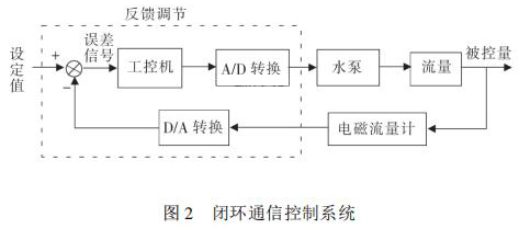 通信控製係統由工控機、變頻器、水泵、數據采集卡、消防91看片视频免费等組成。在整個熱量表耐久性試驗裝置中,消防91看片视频免费與被試驗熱量表串聯在試驗管路中。係統設定流量值 qs,通過工控機發送信號給變頻器,來控製水泵運轉,係統通過研華數據采集卡 PCI1711 將采集到的消防91看片视频免费當前瞬時流量值反饋給工控機,工控機將返回流量值與設定流量值qs進行比較,從而確定是否需要重新調整變頻器頻率控製水泵轉速。此過程是一個完整的閉環 PID 控製過程,其閉環控製過程如圖 2 所示。 2. 2 管路切換係統管路切換主要由冷熱水箱、水泵、開關閥等組成。要實現熱量表耐久性 4000 次冷熱衝擊試驗,需要實時控製管路中熱水與冷水的交替使用。