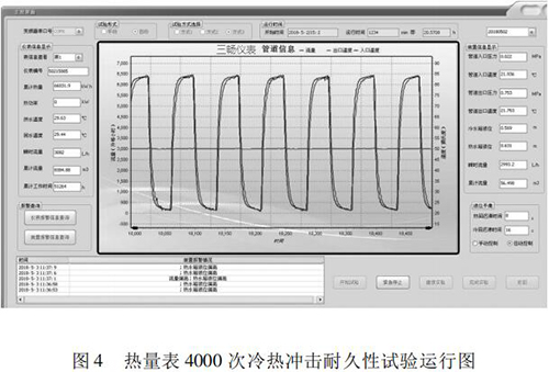 本文研究的 4000 次冷熱衝擊試驗的實現具有以下特點: (1)基於“工控機 +水泵 + 消防91看片视频免费”的閉環控製係統,實現了流量自動反饋調節,滿足試驗要求; (2)通過四個開關閥的時序切換,自動控製試驗溫度,很好的完成了 4000 次溫度衝擊試驗; (3)通過“工控機 + 數據數據采集卡”的數據采集係統,實時監控試驗過程中的流量、溫度、壓力等相關參數,實現試驗方式的自動控製,並能對試驗數據進行分析與評定。 (4)試驗的全過程為智能自動化,可無人員留守看護。試驗結果可直接反映出熱量表在長時間運行後的可靠性。為我國熱量表耐久性試驗研究提供檢測手段,為促進產品質量提升做好技術保障。