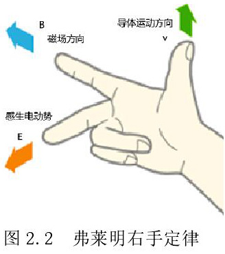 從下圖 2.1 中科了解到流體通過的管道在時刻切割磁力線,一旦流體通過管道就可產生感生電動勢,感生電動勢所產生的方向和磁場方向滿足弗萊明右手定律,具體的方向可參考下圖 2.2 中所示內容。