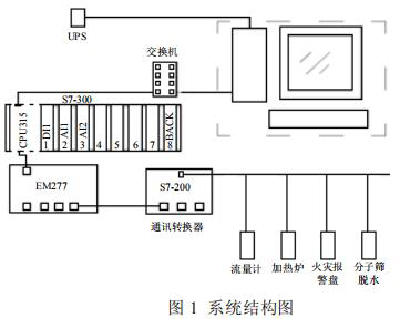 集氣站是收集氣井所生產天然氣的站場,在集氣站內對天然氣進行節流降壓、加熱、調壓計量等各種工藝預處理,設備眾多且分散。為方便進行檢測和操作,必須進行統一的數據采集,在監控台進行數據的管理。集氣站設備主要包括加熱爐、防凍液流量計、分子篩、火災報警盤,以及供電設備 UPS 等,這些不同廠家的設備基本都支持Modbus 協議,通過 Modbus 通訊可以將這些數據采集。為了有效降低成本,設計了如圖 1 所示的係統。係統采用西門子 S7-300 控製器,通過以太網連接上位機監控軟件,再通過 MP277 連接S7-200 的方式。S7-200 控製器自帶 RS485 接口,能夠進行 Modbus 通訊,采集現場各種設備數據。*後通過以太網通訊將設備數據上傳至監控軟件,方便操作人員進行監控,該方案簡單有效,能夠實現集氣站內設備的狀態監控,數據處理,有效的進行天然氣的生產工作。