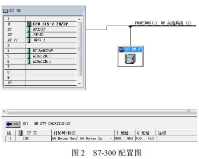 S7-300 控製器與 S7-200 控製器之間的通訊是實現係統數據采集的關鍵,EM277 可以方便的實現 S7-300 與 S7-200 之間的 PROFIBUS DP 通訊,隻需要在 STEP7 中進行 S7-300 控製站的組態,簡單配置 EM277 設備。選中 STEP7 的硬件組態窗口中的菜單 Optionà Install new GSD,導入 SIEM089D.GSD 文件,安裝 EM277 從站配置文件。導入 GSD 文件後,在右側的設備選擇列表中找到 EM277 從站,根據需要的通訊字節數,選擇一種通訊方式。本文中需要通訊的數據量比較大,選擇了*大的 64 字節輸入/64 字節輸出的配置。S7-300 的硬件下載完成後,將 EM277 的撥位開關撥到與以上硬件組態的設定值一致。