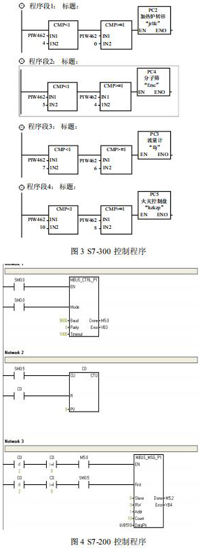 在 S7-200 係統中不需要對通訊進行組態和編程,隻需要將要進行通訊的數據整理存放在 V 存儲區,與 S7-300 組態 EM277 從站時的硬件 I/O地址相對應就可以了。控製器中的程序如圖 3、 圖 4 所示。V4.0 STEP 7 MicroWIN SP6 中循環處理數據,調用“MBUS_CTRL_P1”和“MBUS_MSG_P1”功能,安裝設定的步序采集下表所示的設備數據,將數據循環放置在配置的通訊區中 V 變量區,並為讀取的數據設置數據包號碼,以方便 S7-300進行識別。