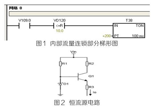 (2)PLC及模塊。PLC及模塊是自動化控製係統主要設備,且PLC及模塊屬於高集成高精密電子設備,保持室內整潔舒適,可以提高自動化係統運行穩定性。PLC及模塊硬件運行可靠,內部控製程序是其控製核心軟件,如PLC硬件出現故障或損壞一般直接更換,但原內部控製軟件無法上傳,整個控製係統成失控狀態。所以其內部控製程序在調試驗收合格後應及時備份並做好標記,為以後修複PLC故障提供保障。PLC係統的維護技術人員需掌握一定基礎PLC控製邏輯原理,對準確判斷PLC故障點有很大的幫助。例如選礦廠水泵房S7-200係列PLC自動抽水係統出現如下故障 :觸摸屏能控製變頻器啟動水泵抽水,但在短時間內會自動停泵,導致無法正常抽水。通過故障現象可初步判斷PLC及模塊硬件設備正常,主要由於某個變量有問題導致連鎖停機。打開備份PLC控製梯形圖程序進行相關分析,原來是DN80汽油流量表瞬時流量數值做了連鎖,其在一定時間內瞬時流量不大於10m 3 /h時,自動停泵,電磁流量模擬量輸出電流值僅為4ma且無變化,確定DN80汽油流量表有故障。可臨時應急維修,模擬量模塊輸入模擬電流值10ma~20ma之間一固定數值即可恢複正常運行。製作簡單恒流源電路代替DN80汽油流量表輸出的模擬電流量,實現解決水泵無法正常運行的故障。