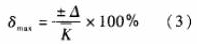 在QQmax,即在測量範圍之外誤差將超過δmax。這就是說雖然渦輪流量傳感器具有很好的重複性,但是由於電脈衝信號頻率F與體積流量Q之間是非線性的,按照常規的平均儀表係數`K的計算方法,對於一定的誤差限士A,由於非線性誤差的存在使得渦輪流量傳感器的工作範圍隻能限定在Qmin~Qmax之內。