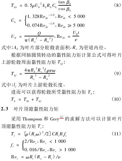 依據Tsukamoto的計算,葉片部分輪轂黏性阻力矩Thb的計算式為: