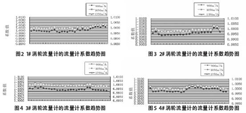 設有1套在線分析係統,對原油密度、黏度和含水等**進行檢測。柴油流量表的檢定采用體積管在線檢定,采用體積管對這4台流量計檢定的流量計係數(流量計係數是流量計基本誤差的一種表示方法,貿易交接量=流量計讀數×流量計係數)趨勢圖如圖2~圖5所示。