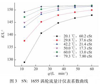 本文以航空潤滑油流量標準裝置為試驗平台,對4支熱水計量表在不同溫度點進行校準試驗,對儀表係數隨粘度和流量變化關係進行分析,並通過雙指數衰減函數對儀表係數(K)和頻率與粘度之商(F/υ)進行曲線擬合。