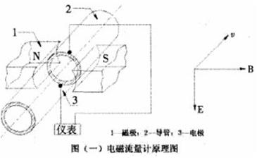 設在均勻磁場中,垂直於磁場方向有一個直徑為D的管道。管道由不導磁的材料製成管道內表麵襯掛絕緣襯裏。當導電的液體在導管中流動時,則導電液體切割磁力線,於是在和磁場及流動方向垂直方向上產生感應電勢,如安裝一對電*,則電*間產生和流速成正比例的電勢差。