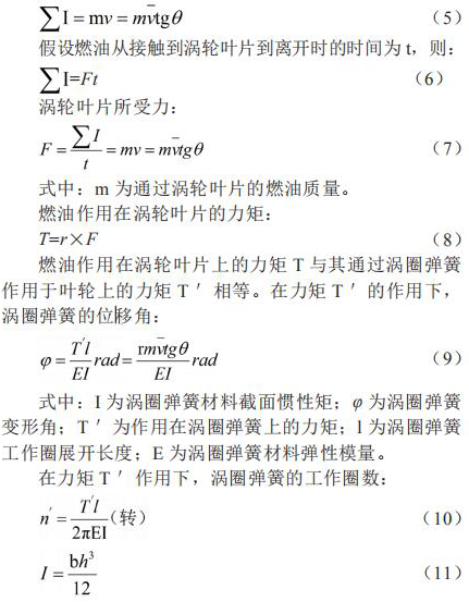 從式(15)中可以得出,當渦圈彈簧材料和形狀確定和渦輪外形尺寸確定的情況下,時間差△ t 與通過的燃油質量 m 成正比例關係,則測量起始脈衝信號與終止脈衝信號的時間差△ t,即可得出通過流量計的燃油質量 m。