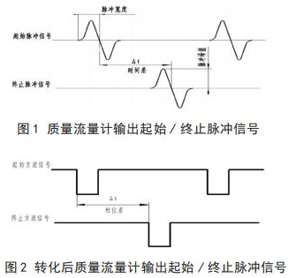 將智能渦輪流量計廠家流量與相關測試設備連接起來,就可以進行智能渦輪流量計廠家的校準,時間差△ t 由專用試驗測試設備可以測出。起始脈衝信號和終止脈衝信號如圖 1 所示。經過專用試驗測試設備信號轉化後的信號方波如圖 2 所示。