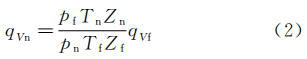 式中:qVf--工況條件下的體積流量,m3/h;qVn--標準狀態體積流量,m3/h;pf,pn--工作狀態、標準狀態流體絕對靜壓,MPa,pn=0.101325MPa;Tf,Tn--工況條件下、標準狀態流體熱力學溫度,K,Tn=293.15K;Zf,Zn--工況條件下、標準狀態氣體壓縮係數。