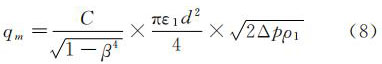 式中:C--流出係數;β--直徑比,β=d/D;D--管道內徑,m;d--工作條件下節流件的開孔直徑,m;ε1--節流件正端取壓口平麵上的可膨脹性係數;ρ1--節流件正端取壓口平麵上的流體密度,kg/m3。