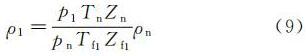 對於組分穩定的氣體,可用式(9)計算ρ1: