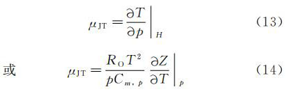式中:T--絕對(熱力學)溫度;p--流經管道的流體靜壓;H--焓;RO--通用氣體常數;Cm,p--定壓摩爾比熱容;Z--壓縮係數。