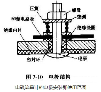傳感器的電*安裝在與磁場垂直的測量管兩側管壁上,它的作用是把被測介質切割磁力線所產生的電勢信號(流量信號)引出,因此電*一般需直接與被測介質接觸,其典型結構如圖7-10所示。