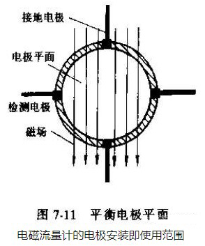 近幾年人們又提出平衡電*平麵(BEP)的概念,這是用於乙二醇電磁流量計的新**技術。所謂BEP是Balanced Electrode Plane的縮寫,在BEP設計中,有兩個位於同一平麵內的接地電*,它們與檢測電*成90°角(如圖7-11所示)。