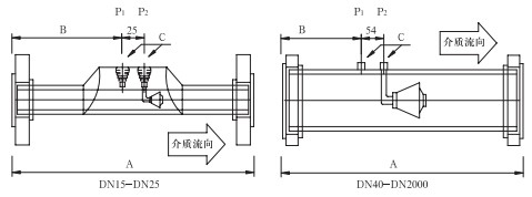 取壓口法蘭公稱直徑(標準設計)為DN40,也可以依據用戶要求選取法蘭直徑。