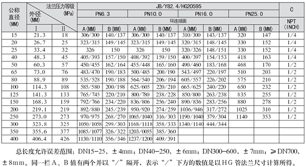 壓力等級(CL/MPa):150/2.0、300/5.0、600/11.0、900/15.0、1500/26.0、2500/42.0