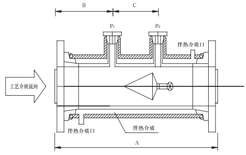 專門為測量要求夾套管伴熱工藝介質的流量而設計,特別適合易結晶介質及溫控要求嚴格的場合。鋼製夾套管法蘭標準:SHT501-1997。