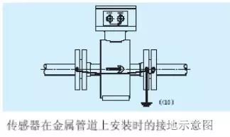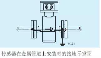 傳感器在金屬管道上安裝(金屬管道內壁沒有絕緣塗層),按下圖接地。