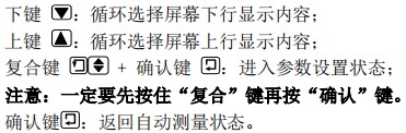 儀表有兩個運行狀態:自動測量狀態、參數設置狀態。儀表上電時,自動進入測量狀態。在自動測量狀態下,儀表自動完成各測量功能並顯示相應的測量數據。在參數設置狀態下,用戶使用四個麵板鍵,完成儀表參數設置。