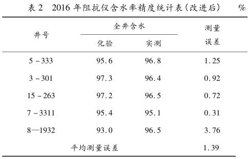 對 2015 年和 2016 年含水率傳感器改進前、後同一時期(3 月份)的含水率測量精度進行了統計,見表 1、表2。改進後的含水率傳感器測量精度提高了 2.85%。